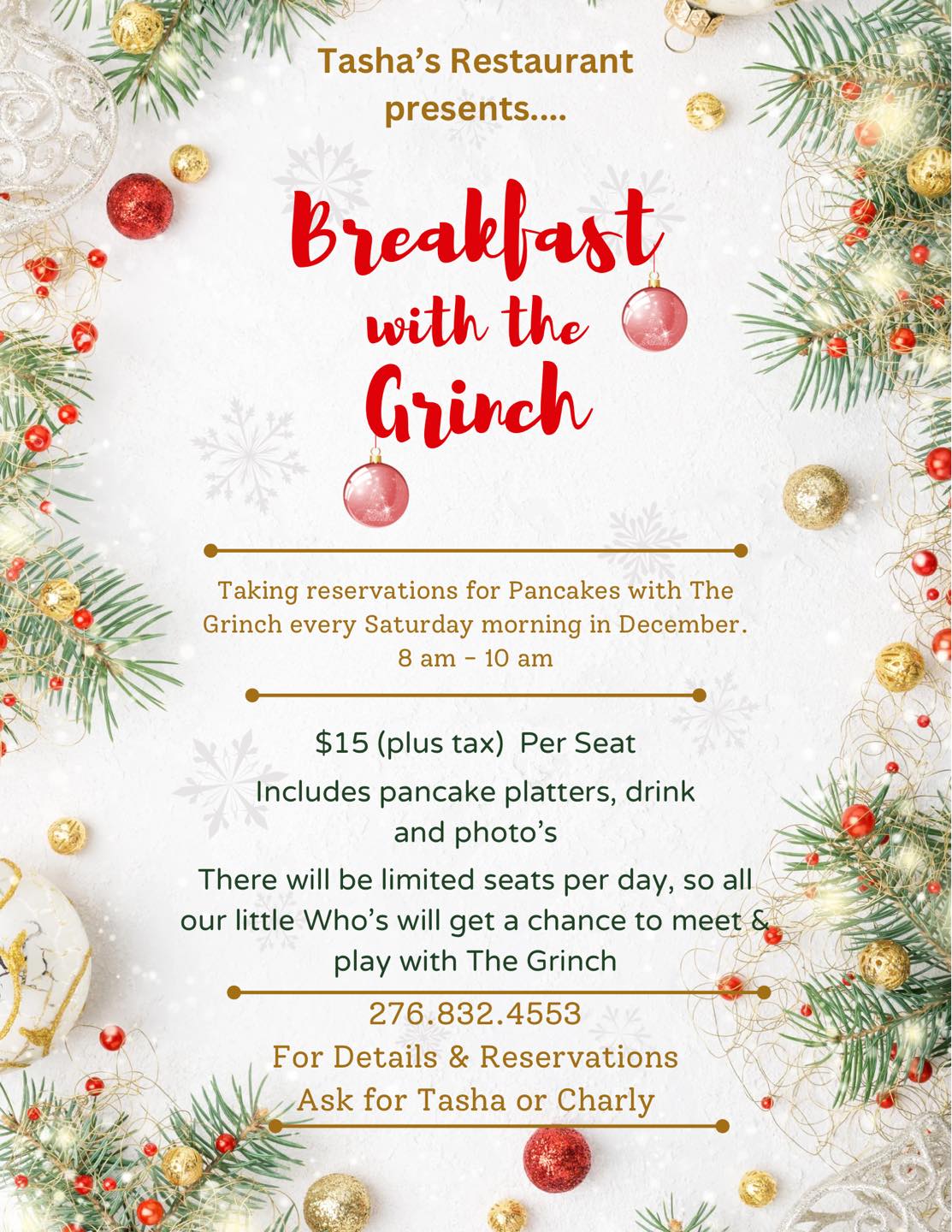 BREAKFAST WITH THE GRINCH IS COMING TO Tasha’s Restaurant! ![]()