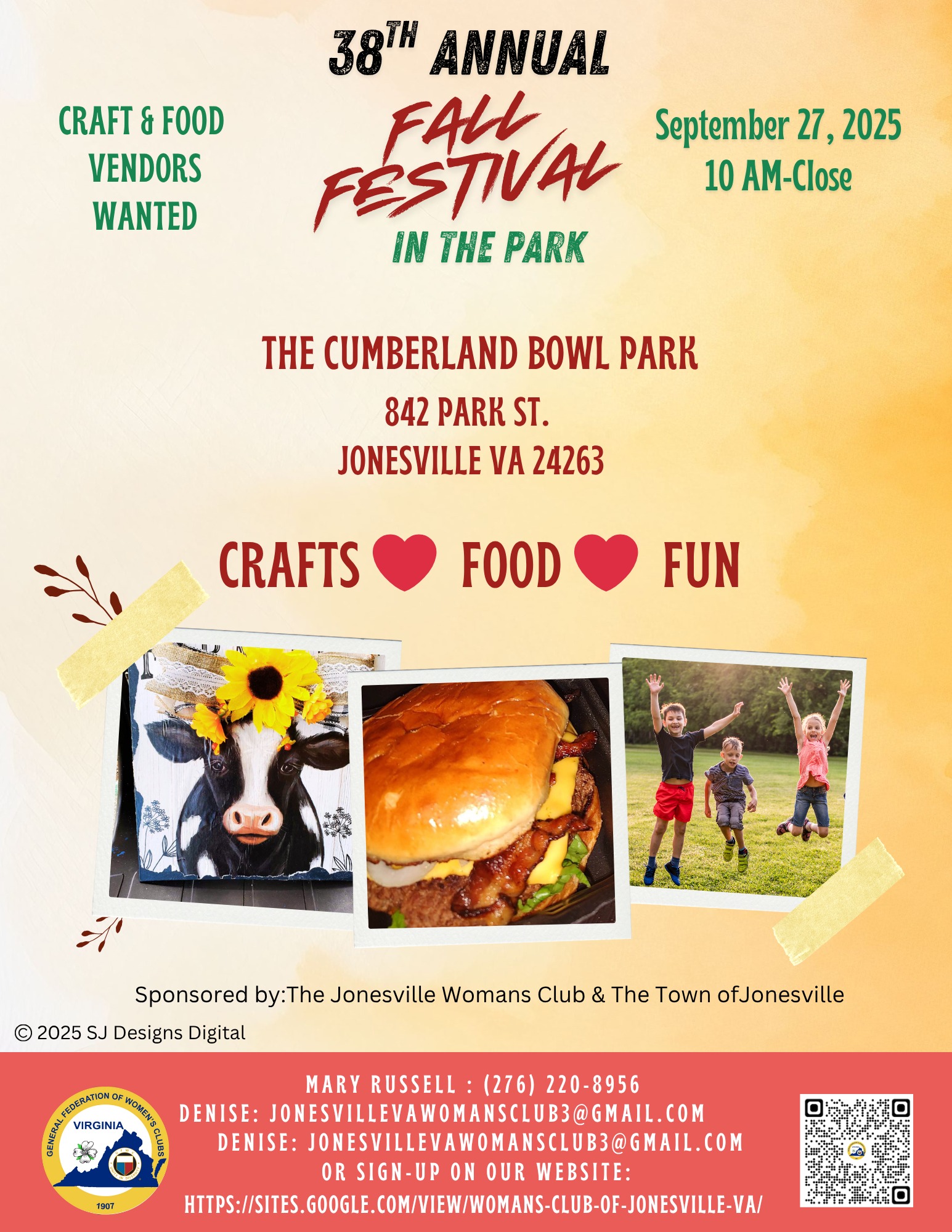 This is the Jonesville Womans Club Event and we are currently seeking craft and food vendors for our 38th Annual Fall Festival in the park! If you are a crafter or a food vendor and you would like to be part of this exciting community event, please visit our website for more information.