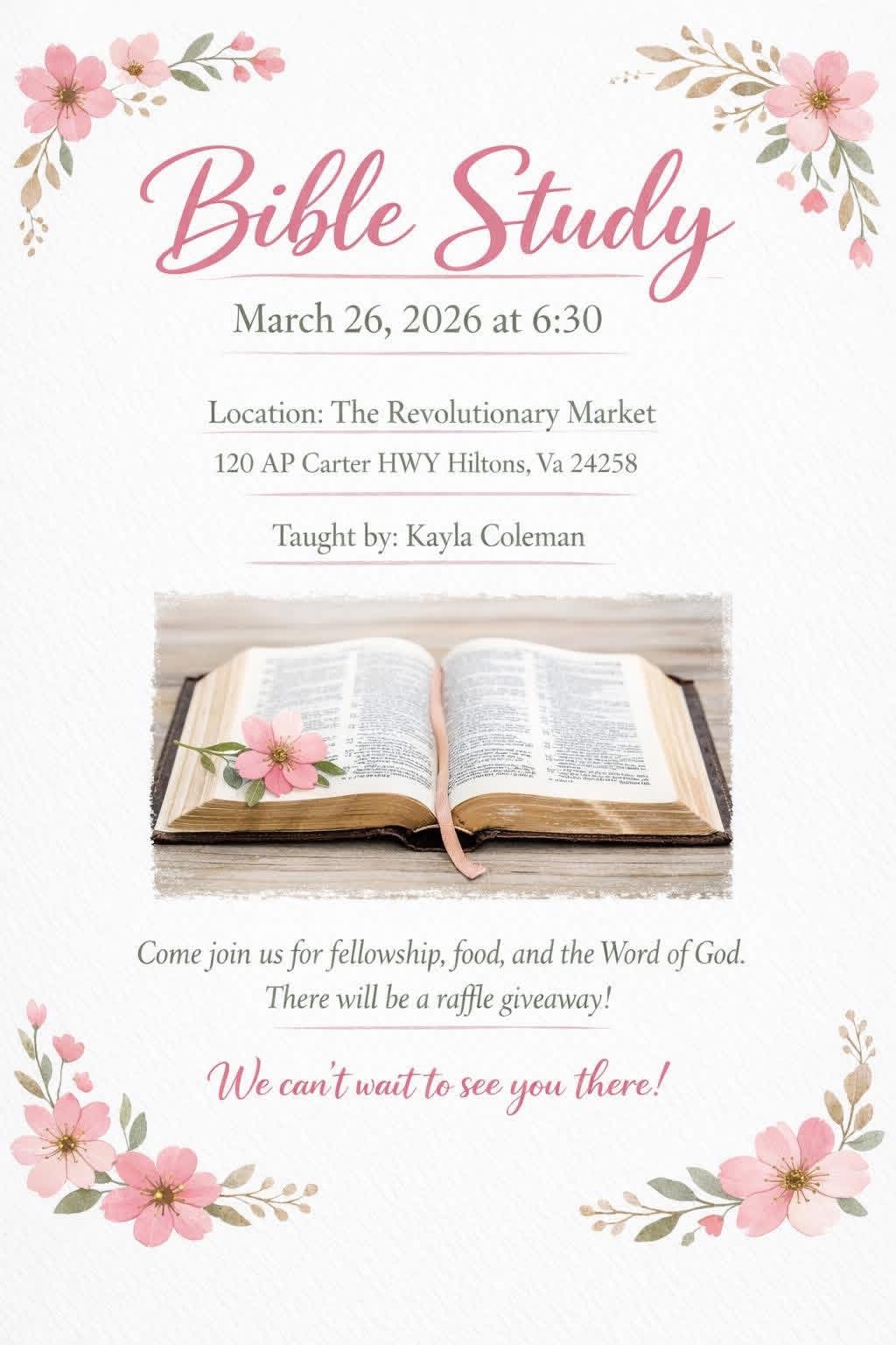 Join us for Bible study at the Revolutionary Market and Community Center!!
