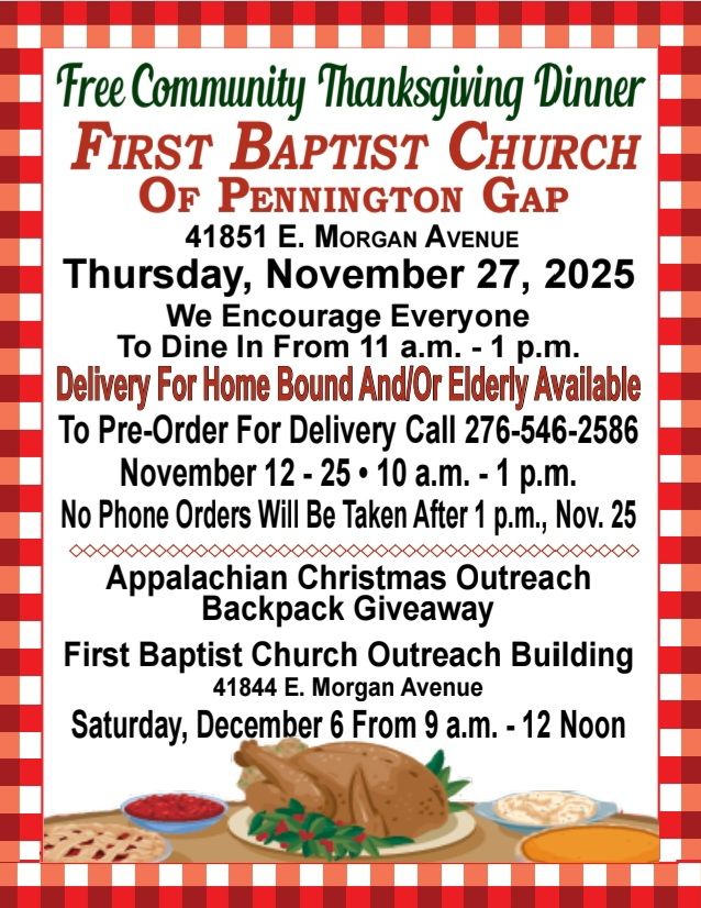 Free Community Thanksgiving Dinner at First Baptist Church of Pennington Gap