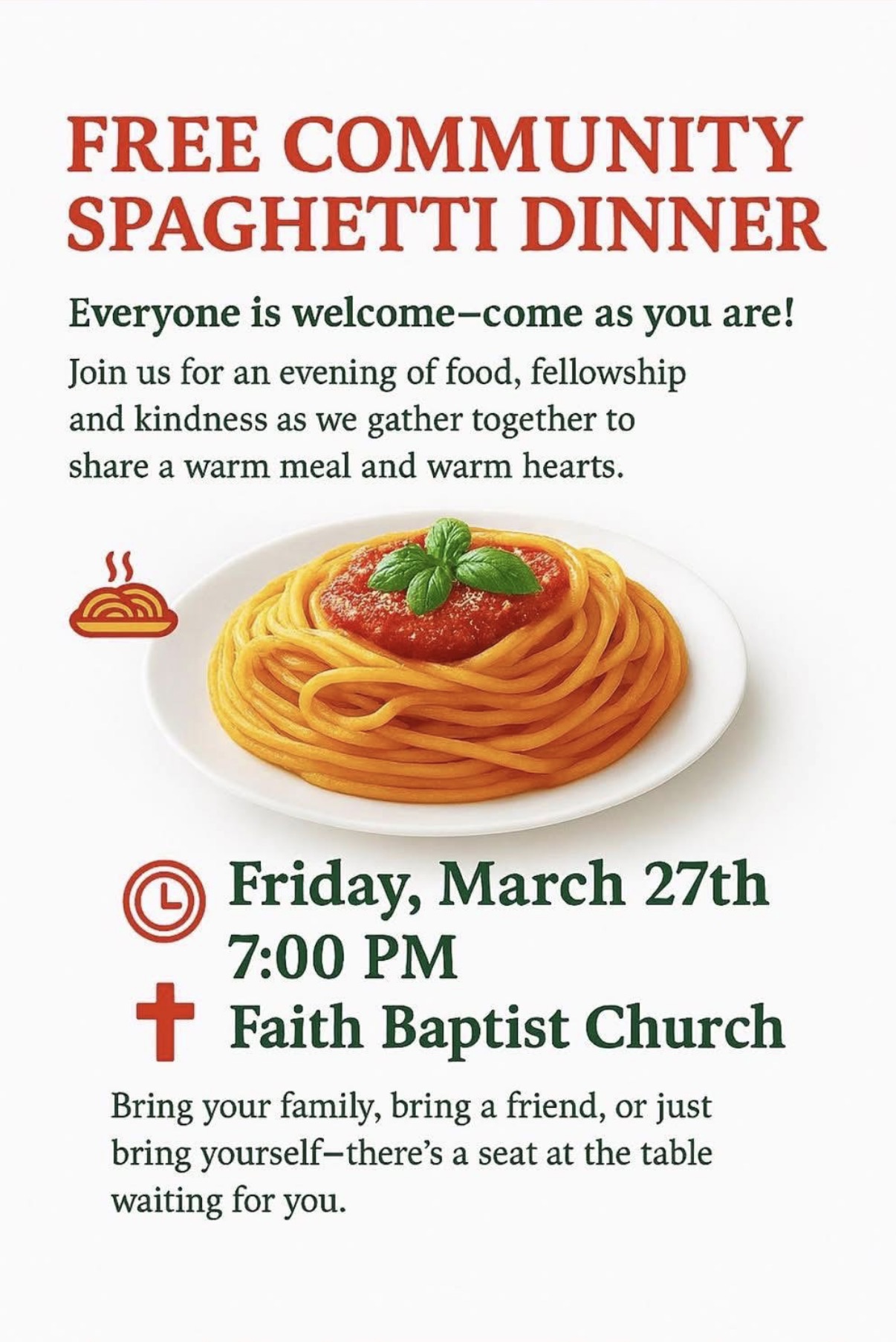 Free Spaghetti Dinner by Faith Baptist Church