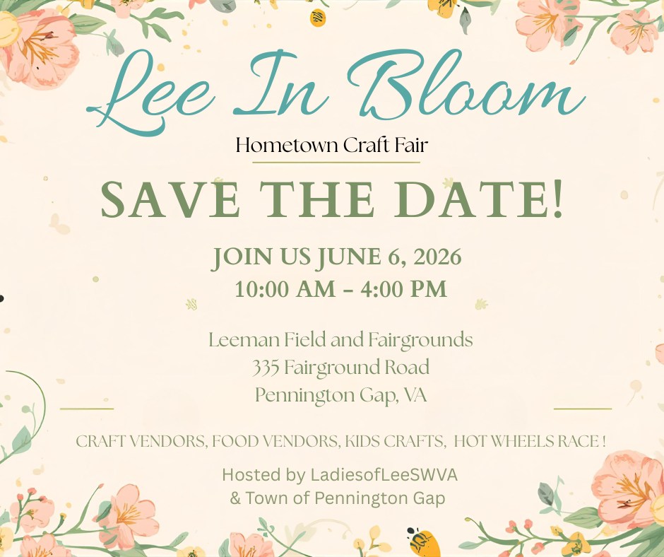 Coming soon to Leeman Field in Pennington Gap! Save the date for the Lee In Bloom Hometown Craft fair. We hope to see you all on June 6, 2026!