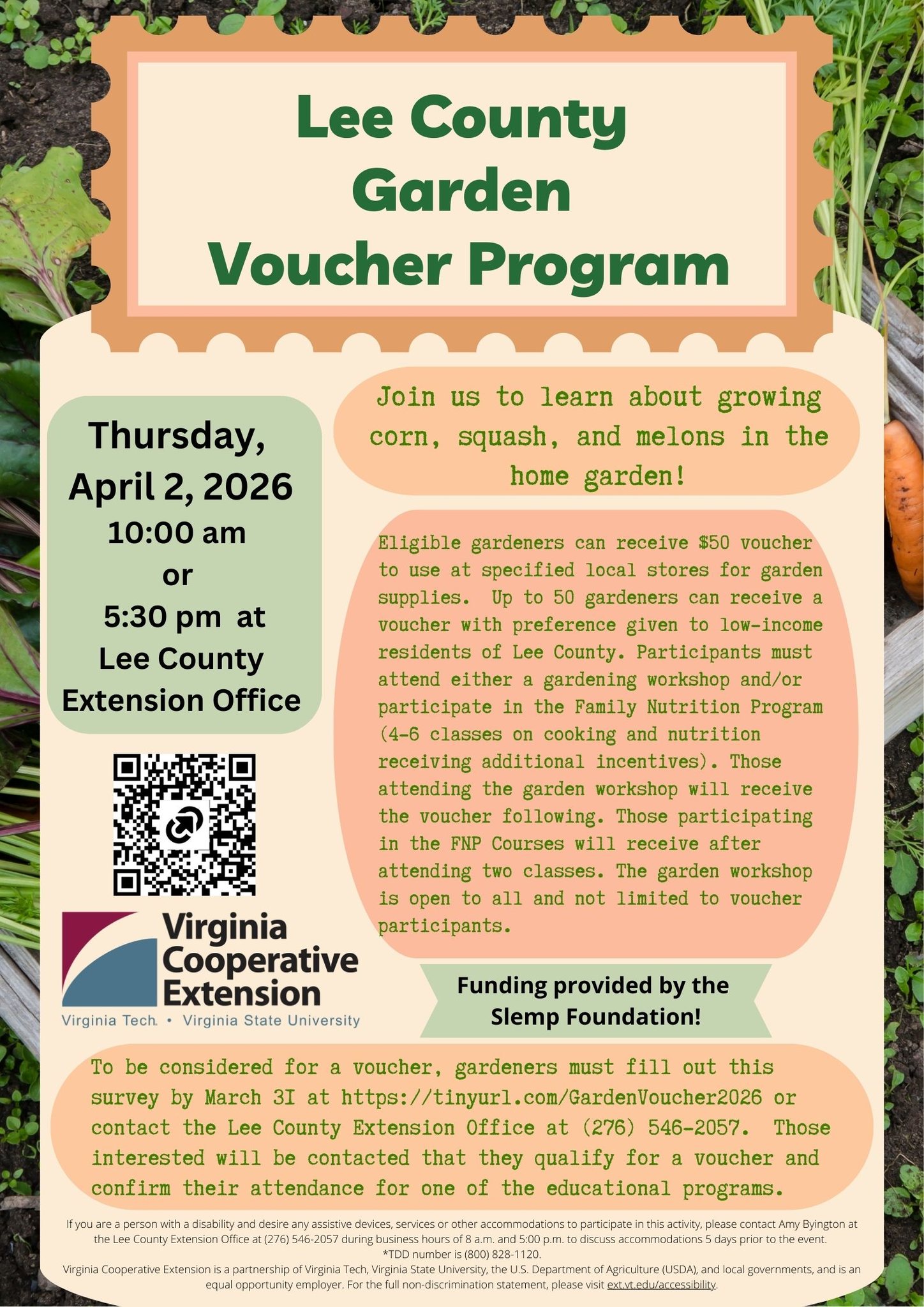 To be considered for a voucher, gardeners must fill out this survey by March 31 at https://tinyurl.com/GardenVoucher2026 or contact the Lee County Extension Office at (276) 546-2057. Those interested will be contacted […]