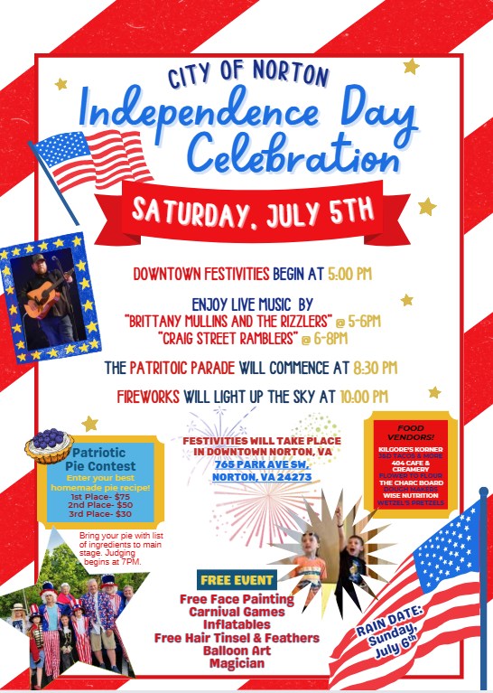 Check out all the festivities Norton will have during their Independence Day Celebration set for Saturday, July 5th! Live music by Brittany Avery Mullins & Craig Street Ramblers. Patriotic Parade and Fireworks! Lots of kids activities including, free facepainting, rides, inflatables, free hair tinsel & feathers, balloon art, and magician! Enter your best pie recipe […]